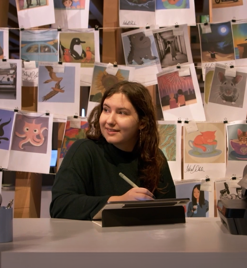 Isabel Schulz is a media artist, animator and illustrator and currently lives and works in Linz. In terms of content, her works revolve around socially critical topics, the aim of which is to unravel complex topics, like Data Security, AI and the Climate Crisis, and present them in an unconventional way in order to bring them closer to the recipient. She was already part of the Kunstuni Campus 2023 with her work “Creative Differences” on the topic of AI-generated art and also of the NextComic Festival 2021, in an exhibition on the topic Augmented Comics.